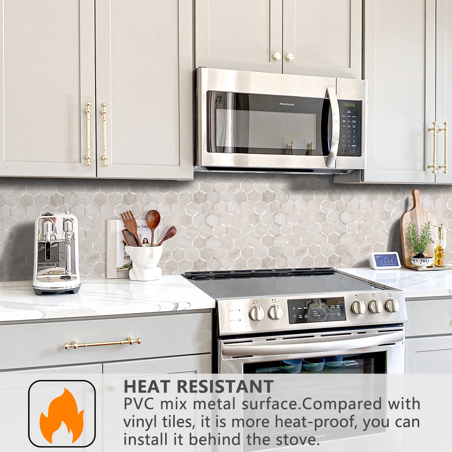 • Premium Kitchen Backsplash: Combination of realistic marble texture and metal, Geometric hexagon metal mosaic tiles add different elegance and sophistication to your life. Widely used in kitchen island walls, living room, bedroom, laundry room , bathroom, fireplace, RV, etc.