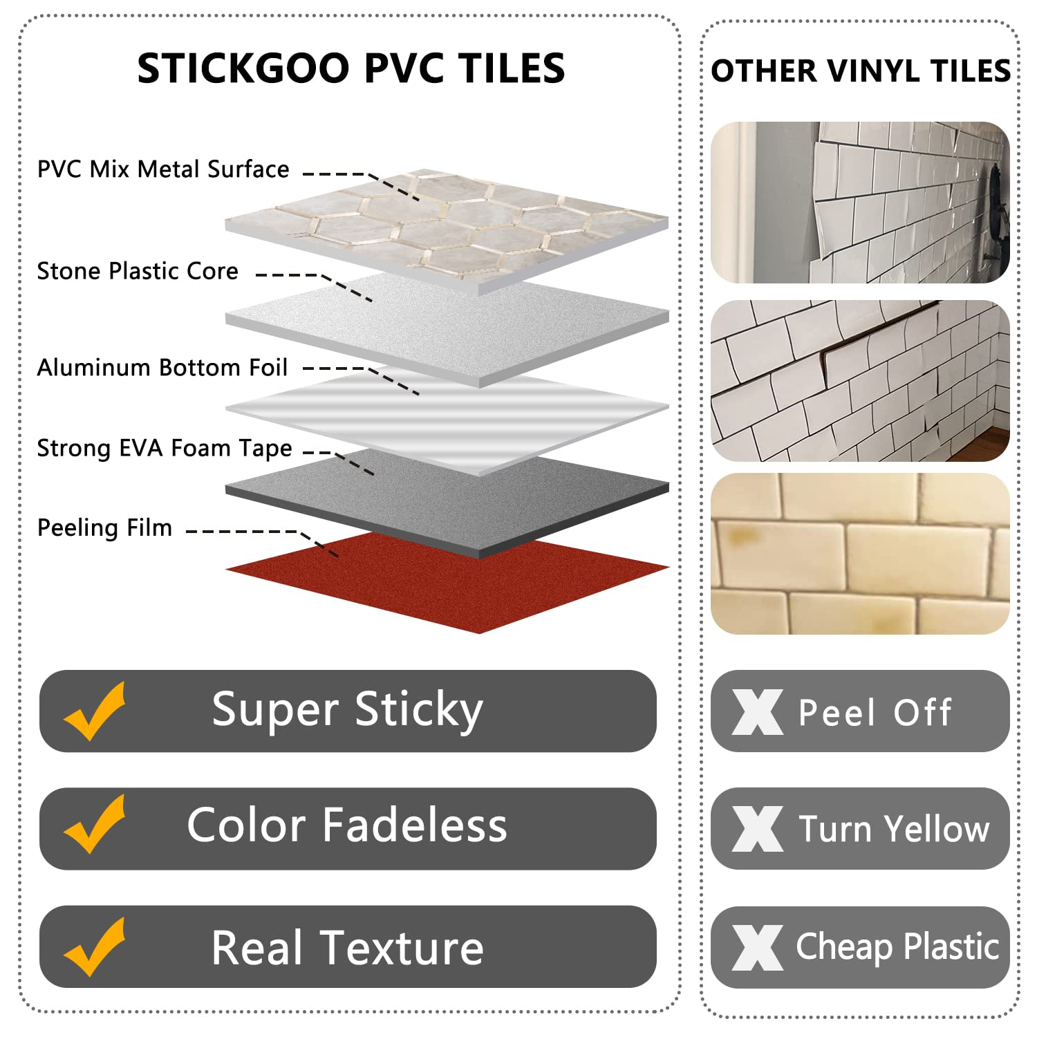 • Super Strong Adhesive: Stronger backing glue than ordinary vinyl pee and stick backsplash tile. It has a strong stickiness, so please confirm the installation position, otherwise it will be difficult to tear off and cause waste.