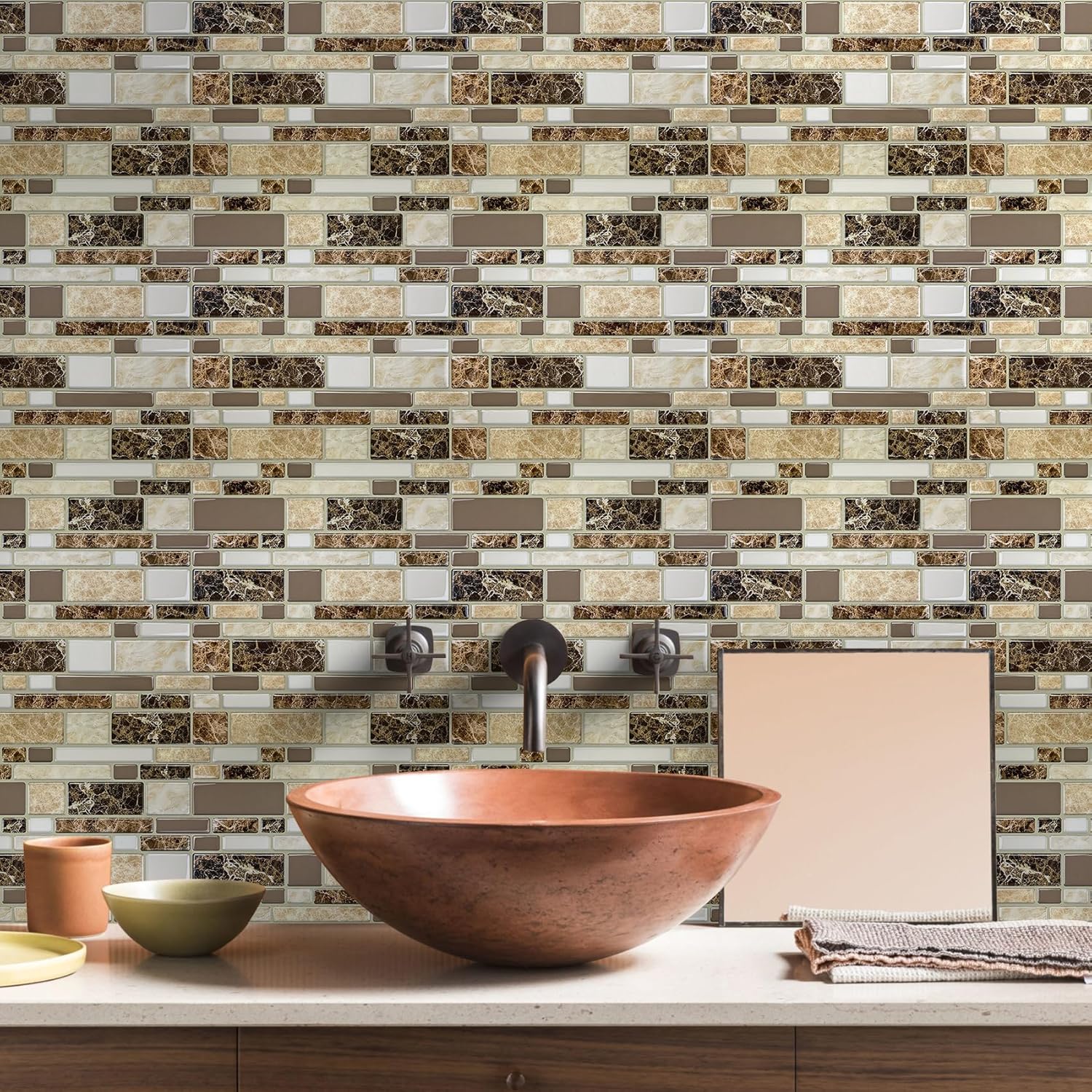 - ✿Approach Ceramic Tile: High-quality 3D gel tiles, not just a sticker tile, Perfectly decorated in Kitchen island walls, laundry room, RV, washbasin, bedroom walls and bathroom backsplash etc.