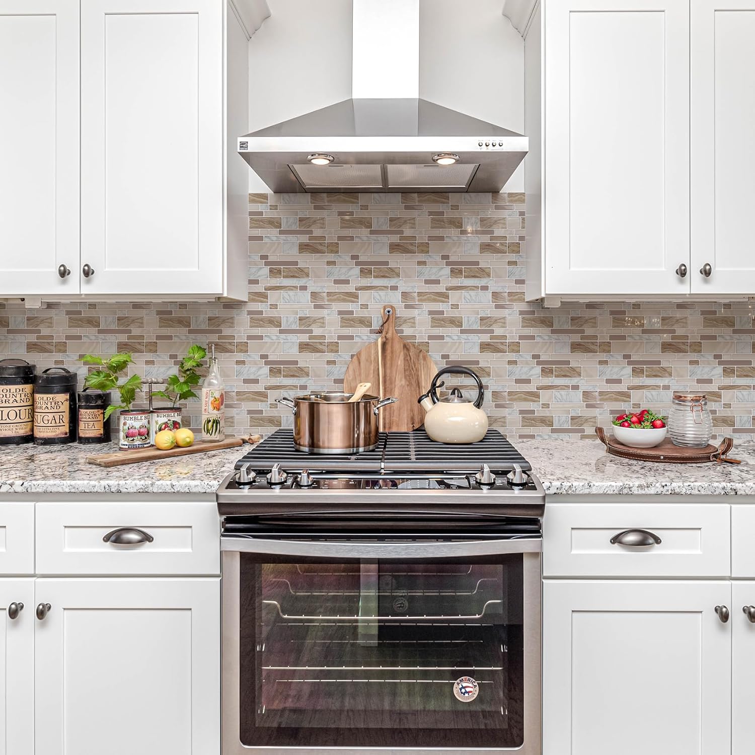 About the backsplash: Transform your kitchen with STICKGOO Linear Blend Vinyl Peel and Stick Tiles. With 10 pieces included, this set features a stunning linear blend design that adds a touch of elegance to any space. Easy to install and maintain, these tiles are the perfect way to upgrade your kitchen with minimal effort and maximum impact.
