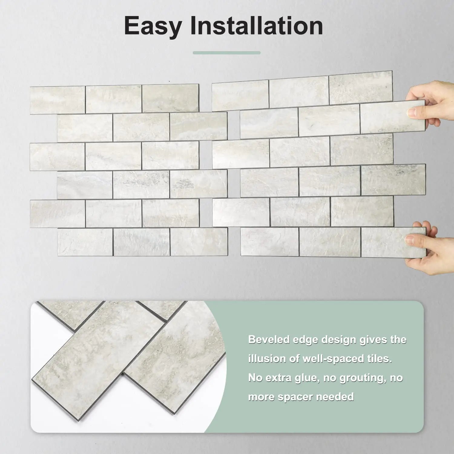- EASY DIY: Peel and stick installation, just interlock one by one. No extra glue, no grouting, without mess. Easy to cut with sharp utility knife or hand saws, save you time and money on contractor.