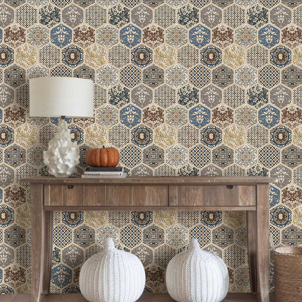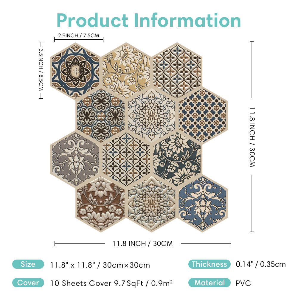 3D Brown Boho Hexagon Peel and Stick Wall Tile