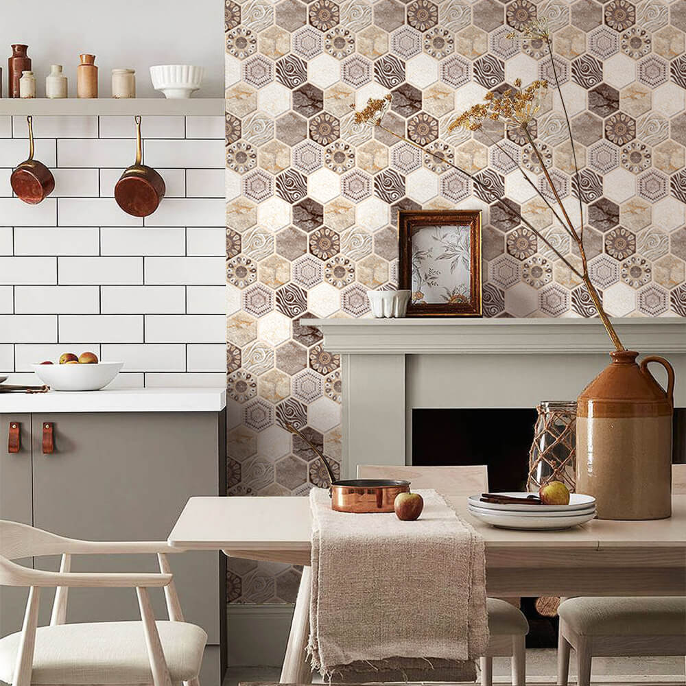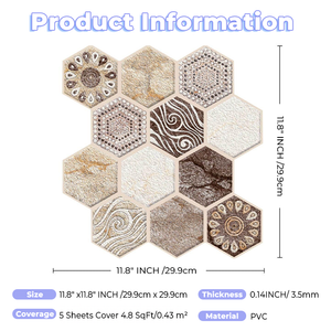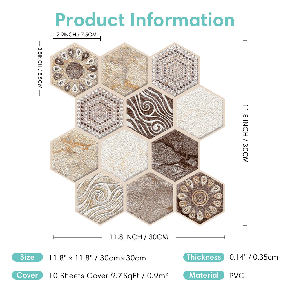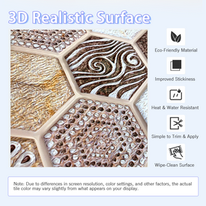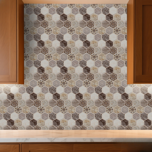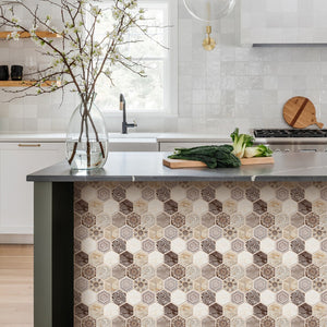 3D Brown Tone Hexagon Boho Peel and Stick Wall Tile