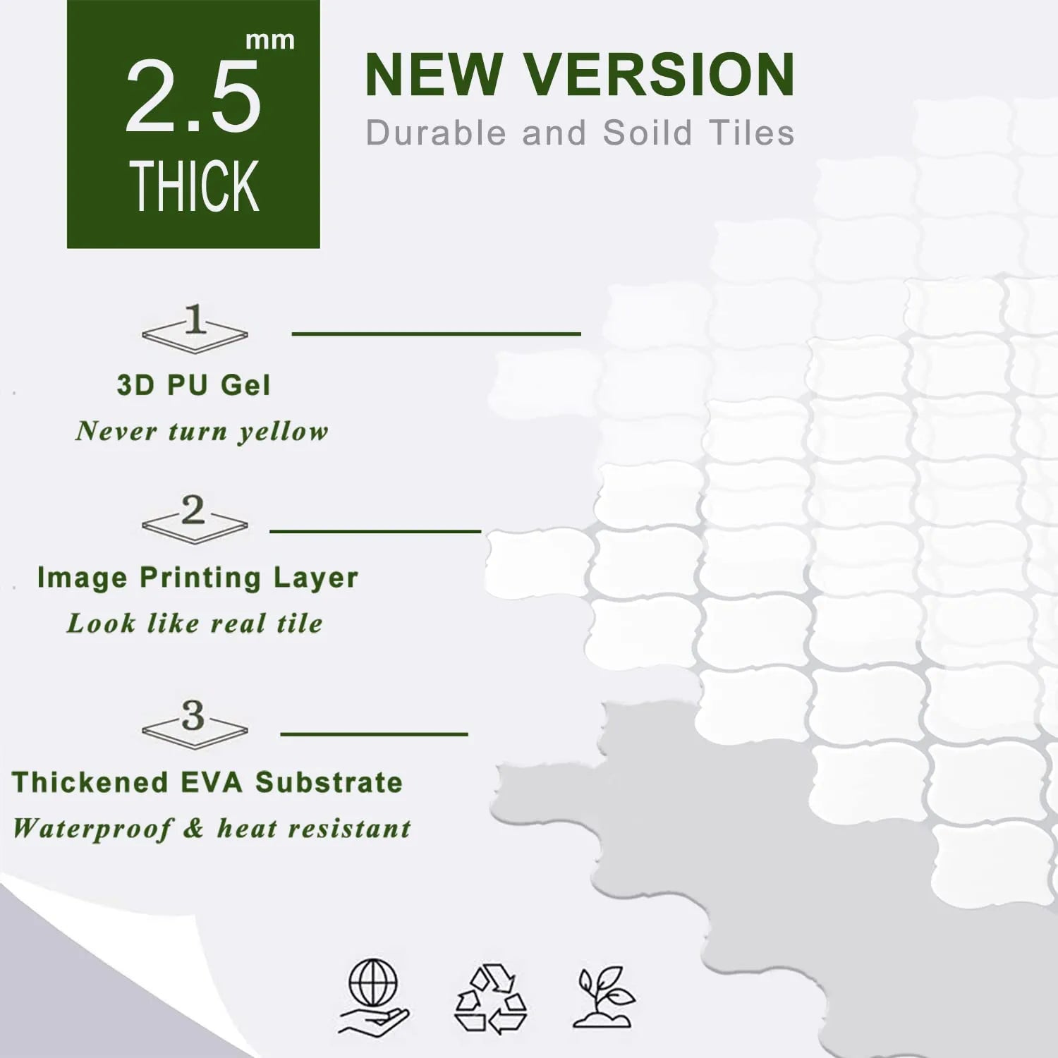 - ❁Stronger Upgrade Adhesive: 3X Stronger backing glue than ordinary vinyl backsplash tile, not only stick firmly to the smooth & clean surface, but also available on lightly textured wall