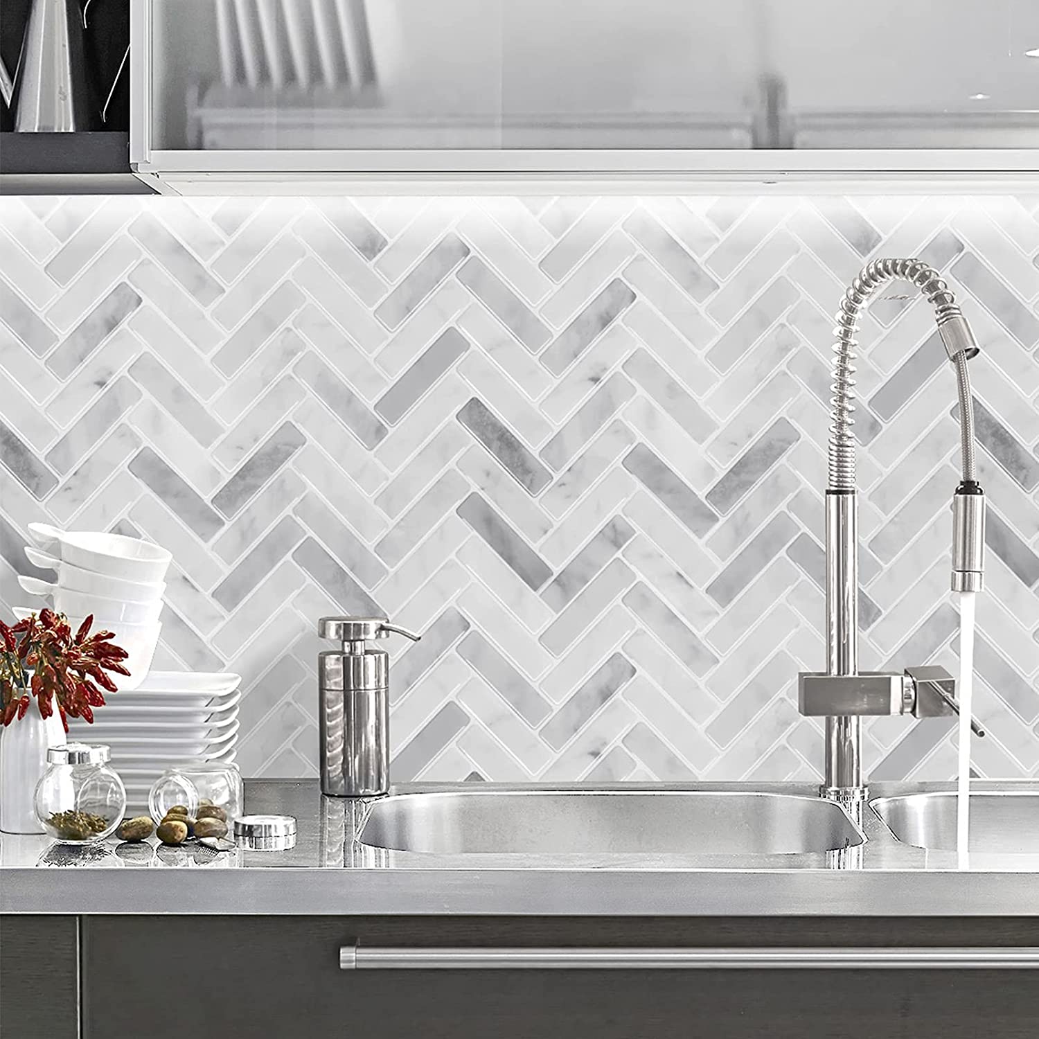 About Backsplash: Transform your space into a luxurious oasis with our Carrara Marble Look Herringbone Tile. The exquisite marble gray design adds sophistication and an art-inspired touch to any room. Elevate your home's aesthetic with this premium tile, perfect for creating a timeless and elegant look.
