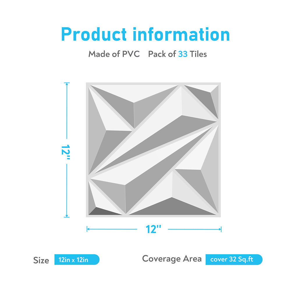 - 【SPECIFICATION】Each package includes 33 decorative wall panels, each measuring 11.8' x 11.8' (300mm*300mm), covering approximately 32 square feet. It comes with 164ft/0.4in double-sided tape for easy, mess-free installation (𝐀𝐝𝐡𝐞𝐬𝐢𝐯𝐞 𝐢𝐧𝐜𝐥𝐮𝐝𝐞𝐝)