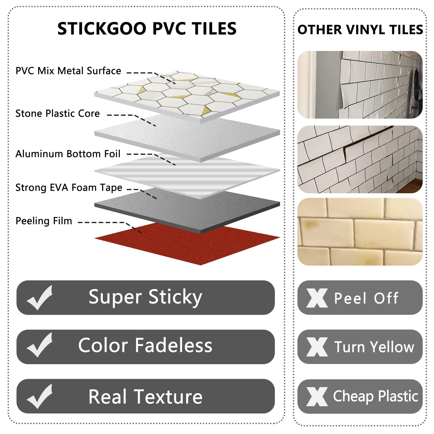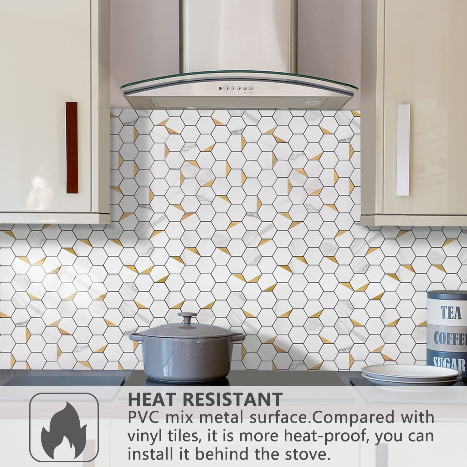 - Premium Kitchen Backsplash: Made of PVC composite laminate, color fadeless, anti-scratch, easy to maintain, more stronger and durable than plastic self-adhesive tiles. Geometric hexagons add different elegance and sophistication to your life.