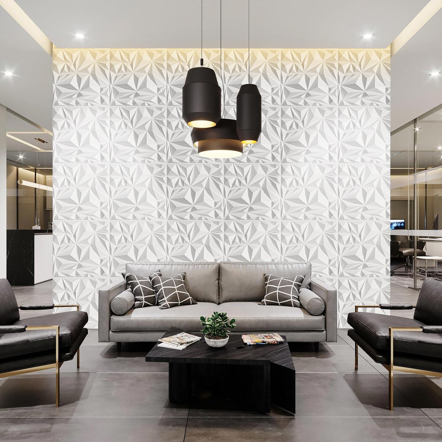 - PERSONALIZATION: Paintable PVC materials, allows you to personalize your walls according to your desired color palette. Use your imagination to plan the placement of captivating 3D diamond panels in conjunction with ambient lighting and home decor style to create a trendy and mordern interior wall decor.