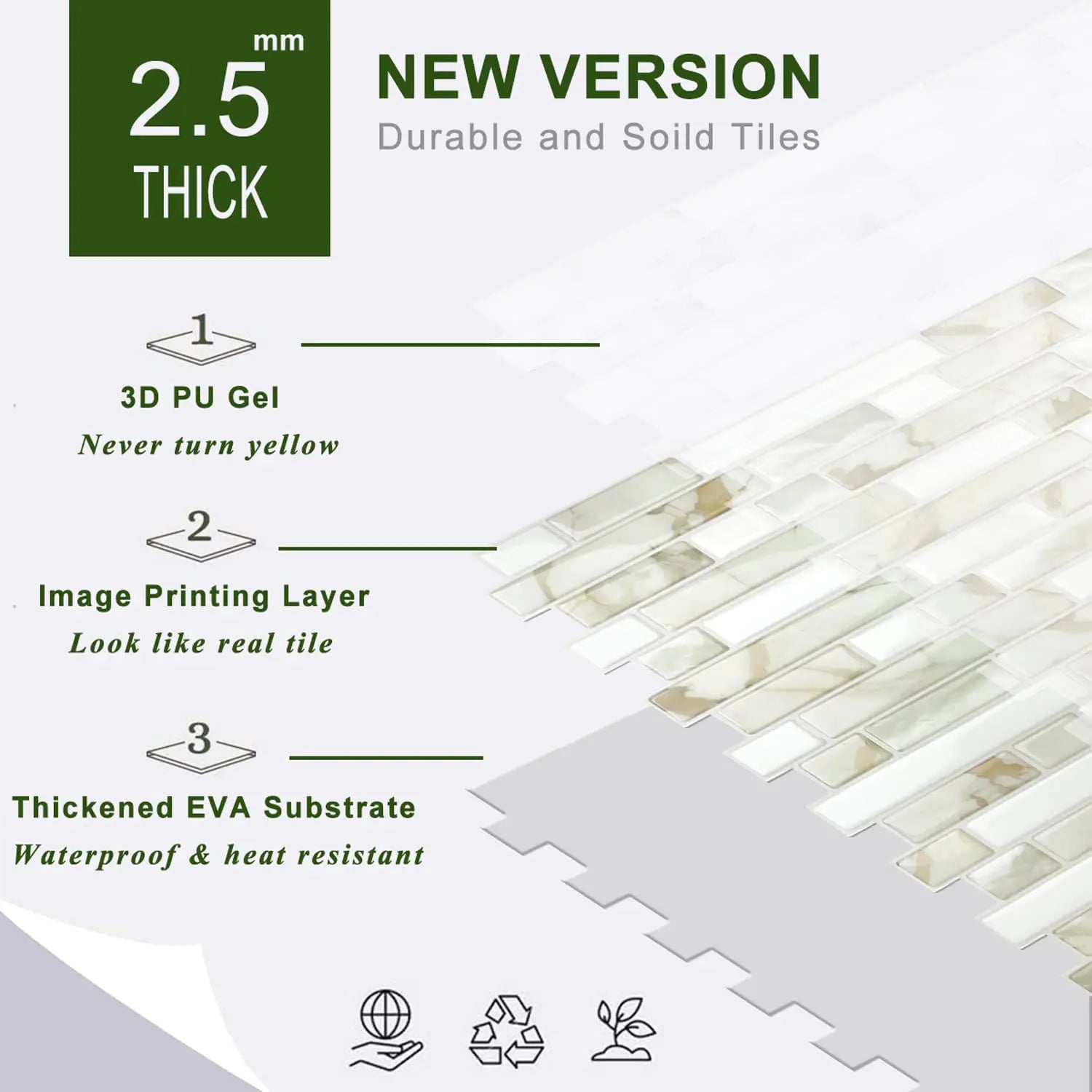 - ❁Stronger Upgrade Adhesive: 3X Stronger backing glue than ordinary vinyl backsplash tile, not only stick firmly to the smooth & clean surface, but also available on lightly textured wall