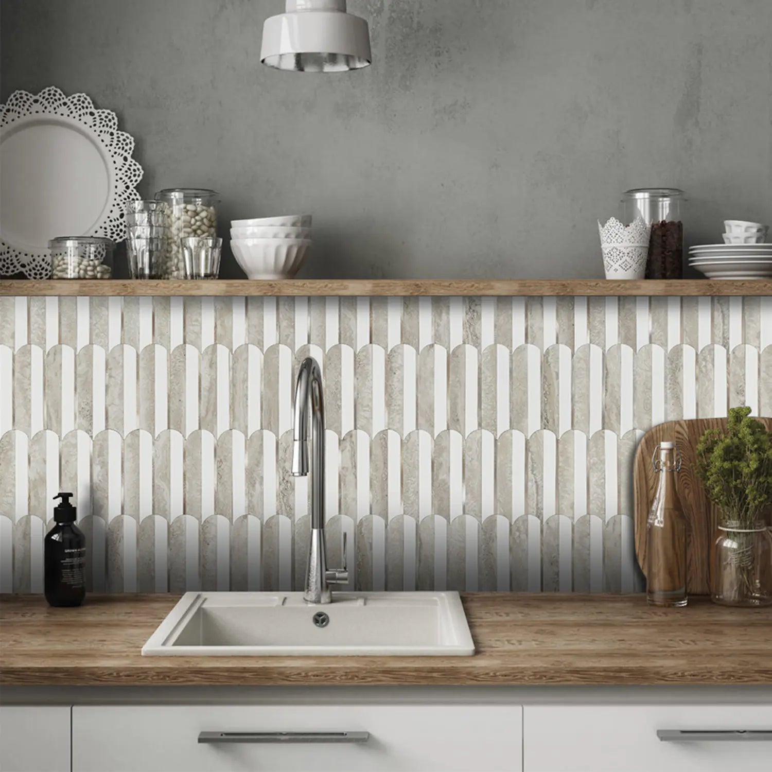 - Premium Materials:Made of PVC composite laminate, anti-scratch, high impact, color fadeless, more durable and stronger than other plastic self-adhesive tiles. Realistic marble texture and Long Oval Geometric design, which can be installed in Vertical or Horizontal styles, and match with most of the countertop.