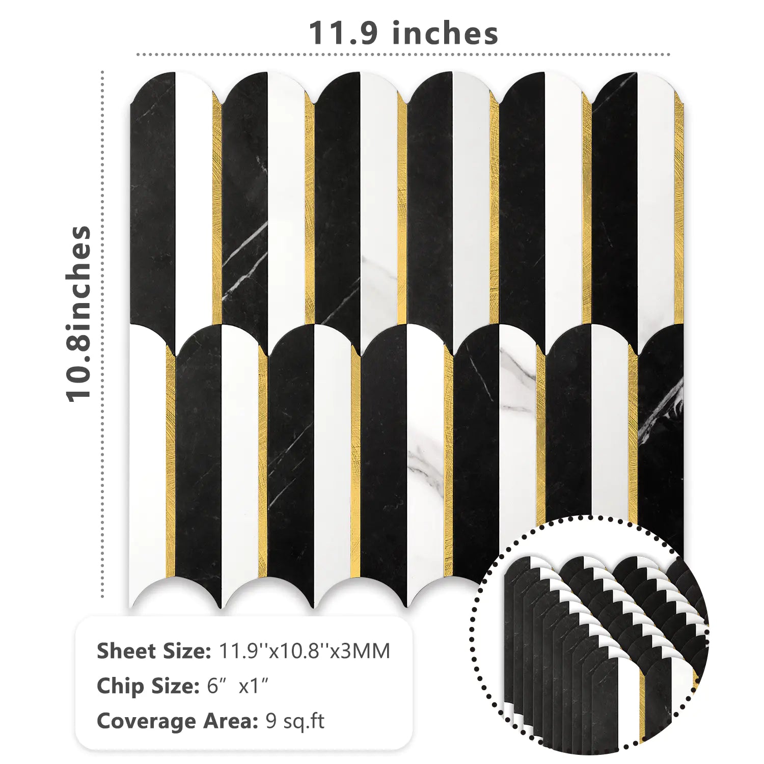 - Premium Materials:Made of PVC composite laminate, anti-scratch, high impact, color fadeless, more durable and stronger than other plastic self-adhesive tiles. Realistic marble texture and Long Oval Geometric design, which can be installed in Vertical or Horizontal styles, and match with most of the countertop.