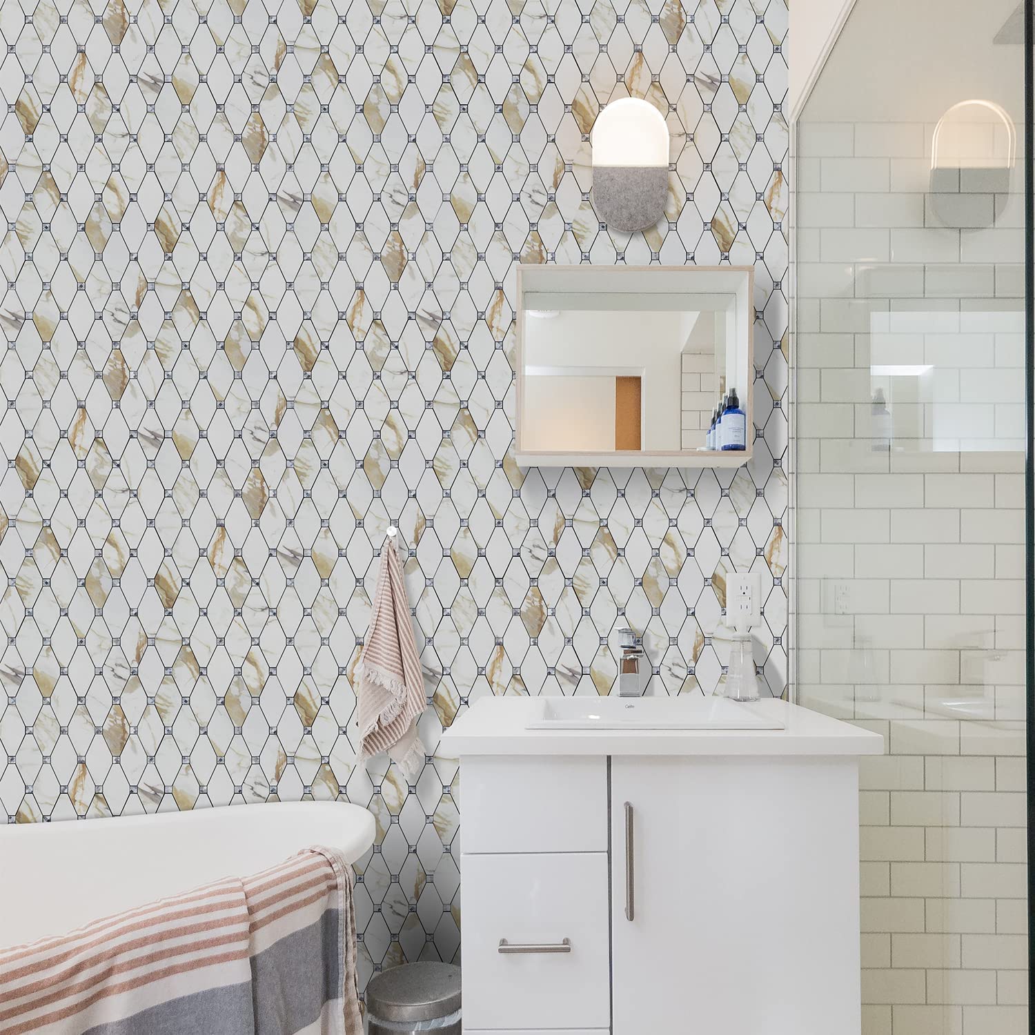 - HOME DECOR OCCASSION: Mosaic tile sticker can be widely used for kitchen island walls, bathroom walls, laundry room, fireplace, countertop, RV, etc. Can’t get enough of the marble trend? Refresh your space with this new version backsplash.