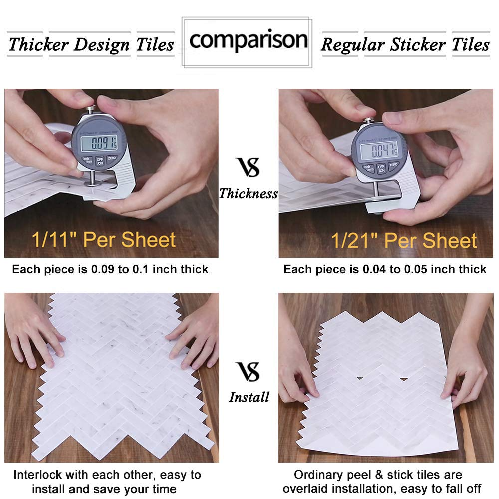 - 🌹2-3 Times Thickness: Much thicker than ordinary peel & stick tile, 2mm-2.5mm each, durable and solid tile, unlike soft sticker tiles