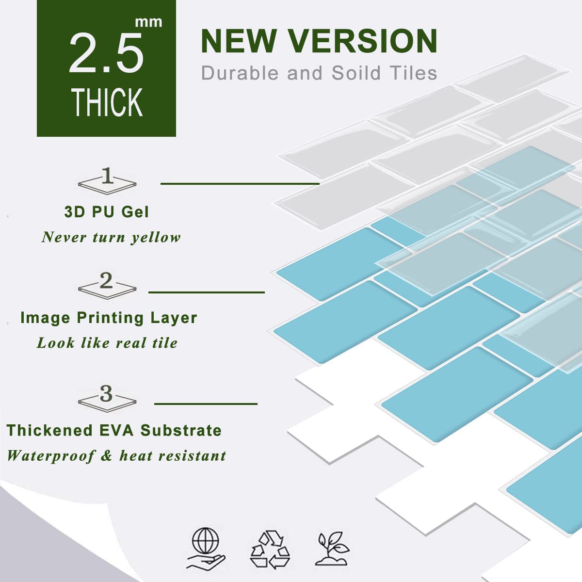 - ❁ Stronger Upgrade Adhesive: 3X Stronger backing glue than ordinary vinyl backsplash tile, not only stick firmly to the smooth & clean surface, but also available on lightly textured wall